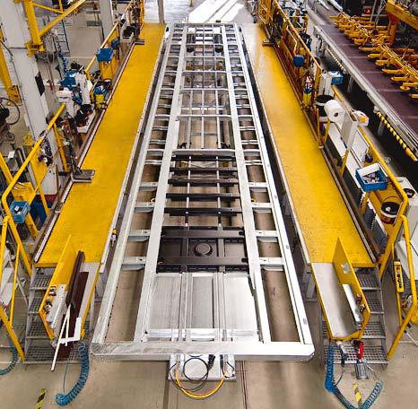 Pevná a zároveň lehká čelní stěna je sestavena z hliníkových profilů. Dodatečné zvýšení pevnosti je dosaženo díky rohovým podpěrám z pozinkovaného plechu. Čelní stěna je z vnitřní strany chráněna proti poškození 750 mm vysokým ocelovým obložením.